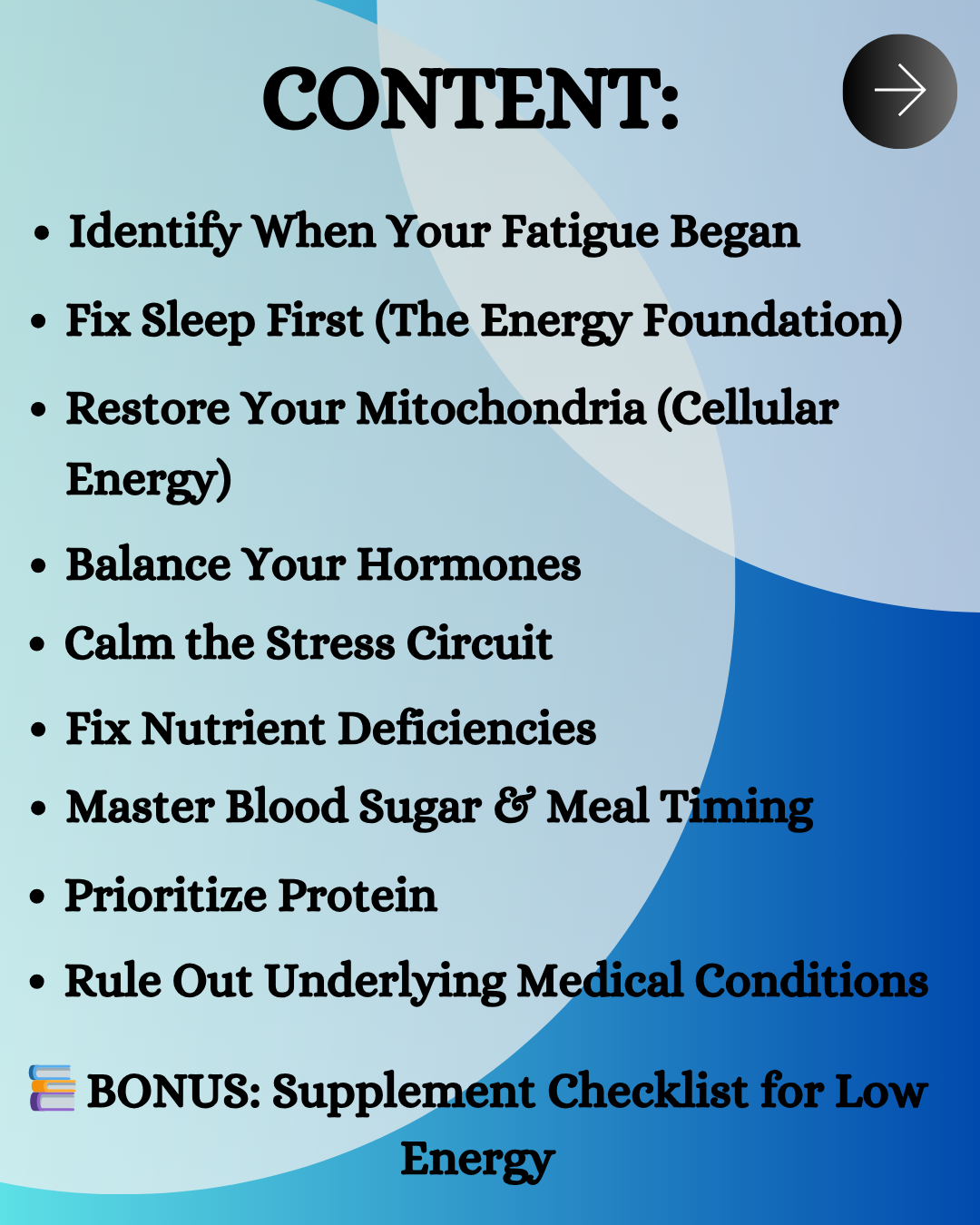 This healthcare-informed resource helps you break the cycle of exhaustion by targeting root-level issues like poor sleep hygiene, hidden nutritional gaps, and lifestyle imbalances.
